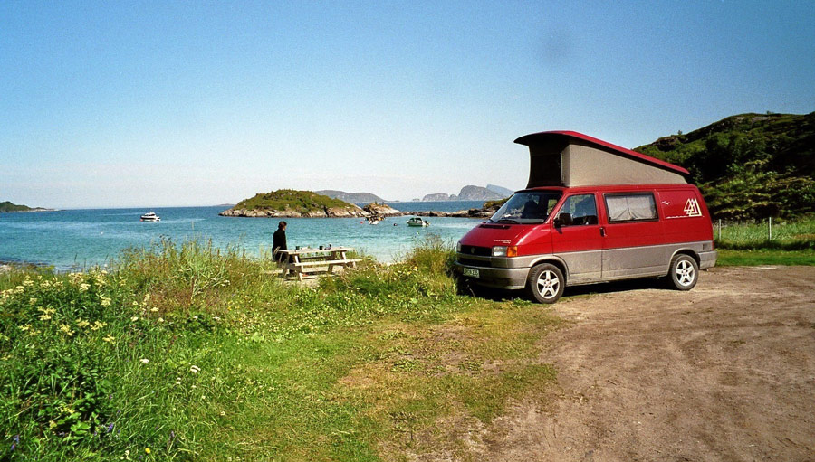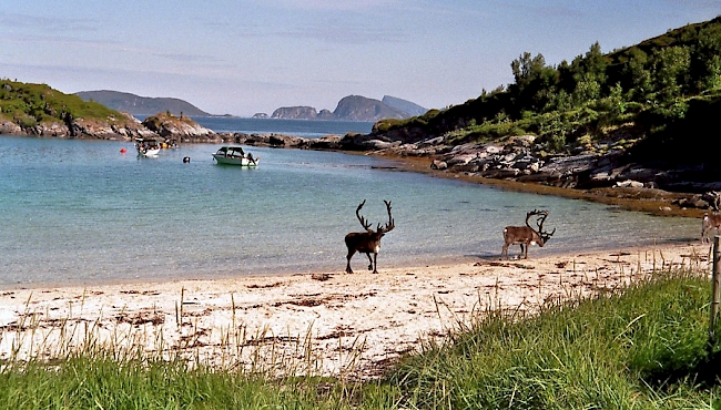 One of the camp spots we have visited pretty often in the past. It is located at a dead end right at a beach. In the summer you will also find a simple toiltet cleaned once a week. This place is perfect to experince the midnight sun, if the weather let you. The sea here is great for fishing. When you want to rent a boat for giving it a try you can ask Jan Viktor for renting one of his boats, call +47 975 66260. We did this several times - with great results, we got fish for several weeks. Seems like reindeers are enjoying beach life, too. You will met them sun bathing in the sand every now and then. Fresh water can be filled at the graveyard entrance.